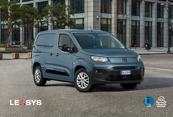 * Cuota mensual renting sin IVA para un E-DOBLO Combi L1 100 kW 50 kWh en Península y Baleares para clientes personas jurídicas o físicas no consumidores, para contratos de 48 cuotas y 40.000 km. Incluye: Seguro de responsabilidad civil de suscripción obligatoria con responsabilidad civil complementaria (hasta 50 millones €), defensa jurídica, lunas, seguro accidente conductor y ocupantes de 30.000€ en caso de fallecimiento o Invalidez permanente y absoluta, daños propios sin franquicia (incluye incendio y robo), asistencia 24h, mantenimiento, servicio de conectividad del vehículo ("Connect Fleet"), impuestos de circulación y gestión de multas. Oferta de Leasys S.p.A. Sucursal en España válida solo para Península y Baleares para pedidos hasta el 30 de noviembre de 2025. Operación sujeta a validación de riesgo. La imagen del modelo visualizado puede no coincidir con el modelo ofertado. **Estación de carga incluida para pedidos clientes Leasys de un E-DOBLO Combi L1 100 kW 50 kWh, hasta el 30/11/2025.
