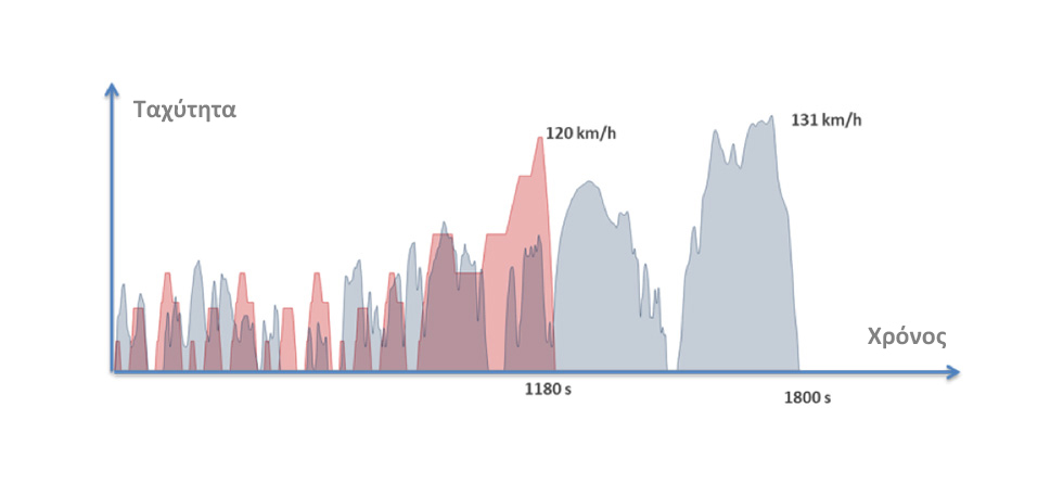 | Μέση ταχύτητα | 34 χλμ/ώρα | 46.5 χλμ/ώρα |